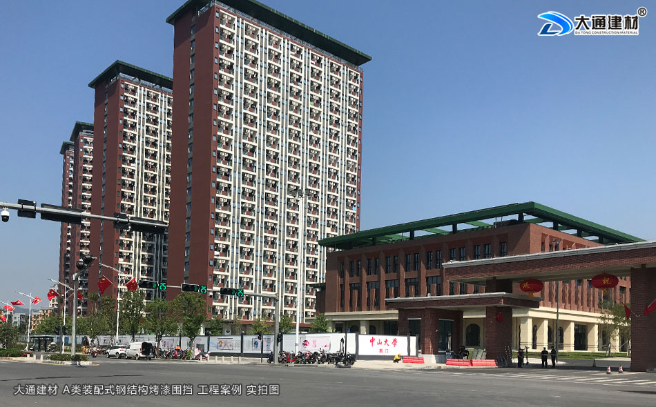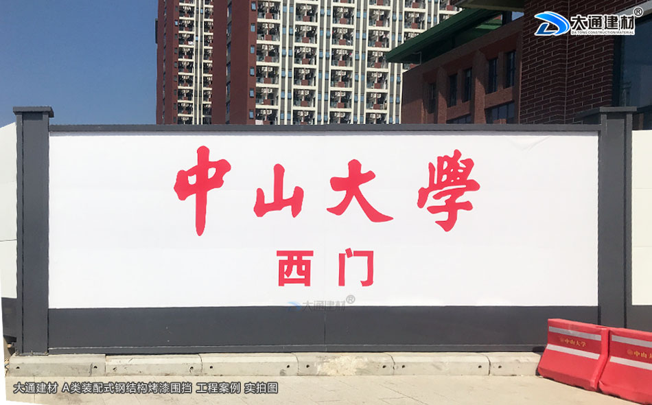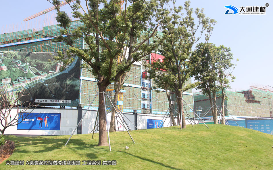 中山大學深圳建設工程位于深圳市光明新區,項目總建筑面積萬平方米,主要由深圳市建筑工務署承建,此項目工程施工圍擋選用的是深圳大通建材提供的鋼圍擋,主要以A類鋼圍擋烤漆半龍骨款為主,個別路段還選用了C類鋼圍擋烤漆款、C類鋼圍擋鍍鋅板款?!胺仙钲跇藴蕠鷵酢⒚烙^環保、抗風力強、安全穩固、可循環使用、節約成本”等是深圳大通建材A類鋼圍擋烤漆半龍骨款的特點,很適合市政建設施工、房地產項目施工、地鐵修建、管網改造、小區改造、城市建設、道路施工等工程使用。