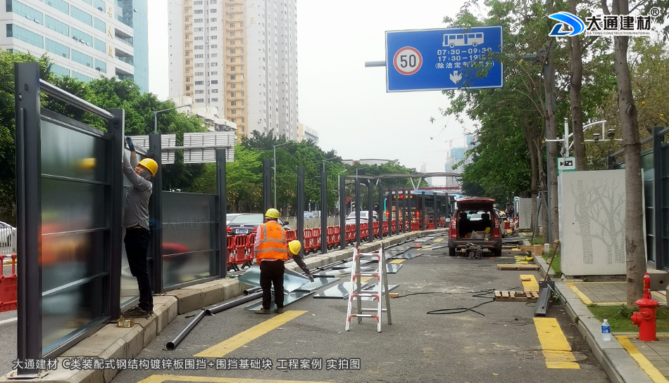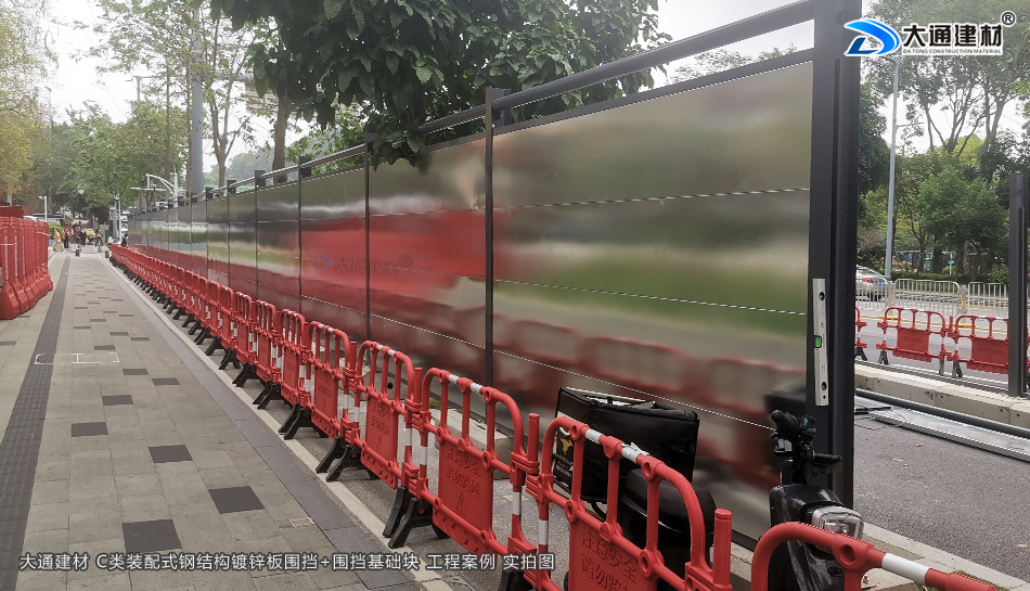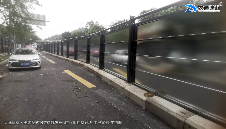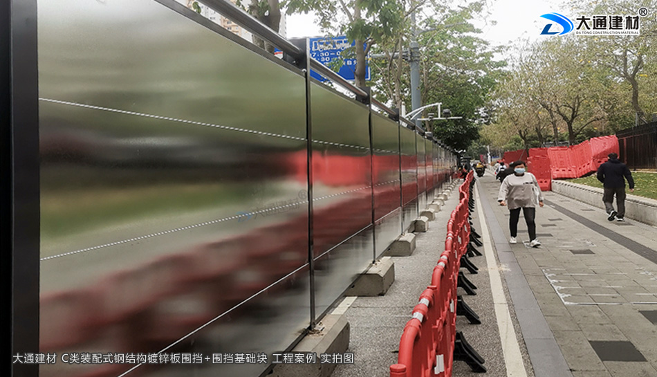 深圳市羅湖區(qū)黃貝街道項(xiàng)目工程使用的是深圳市大通建材提供的C類鍍鋅鋼結(jié)構(gòu)圍擋+圍擋基礎(chǔ)塊,由大通建材公司專業(yè)團(tuán)隊(duì)生產(chǎn)-銷售-配送-安裝等服務(wù)