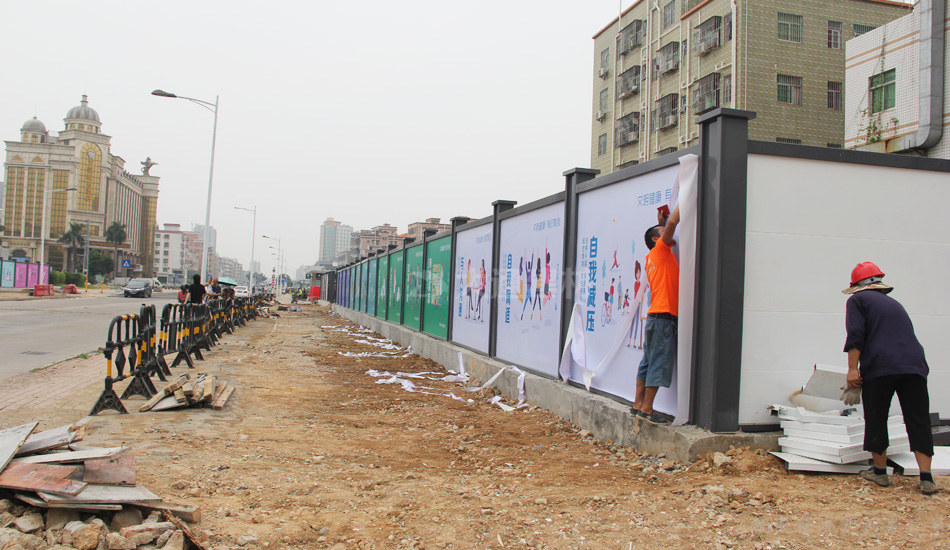 深圳新標準鋼圍擋 安全、綠色、美觀——堅持深圳質量,關注城市美學,培育精益求精的工匠精神,結合深圳開放、創新、現代、濱海的城市的特征和公益宣傳的要求,在構造形式統一的前提下,提供具備不同區域環境特點的外觀設計方案,并通過外觀裝飾使鋼結構式圍擋和砌筑式圍擋形成統一的風格;再結合城市區域特點,分片區、分道路、分街景各自選用同類風格圍擋,在營造美觀、整潔的城市環境的同時,實現圍擋風格區域性的協調統一。