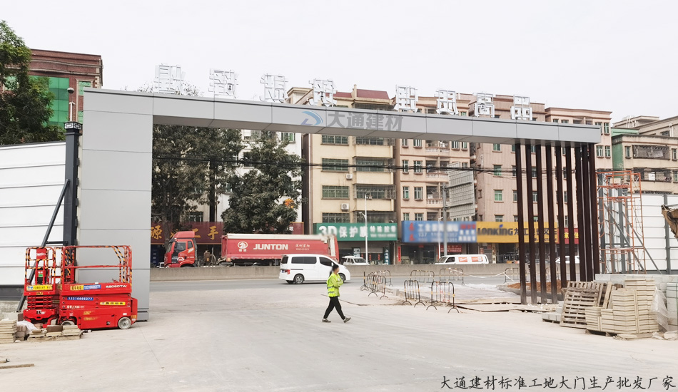 深圳市大通建材有限公司生產的標準工地大門,廠家直銷,美觀大氣、穩固耐用;適用于市政建設施工、房地產項目施工、地鐵項目施工、管網改造等工程。更多詳情請致電梁先生13826562448