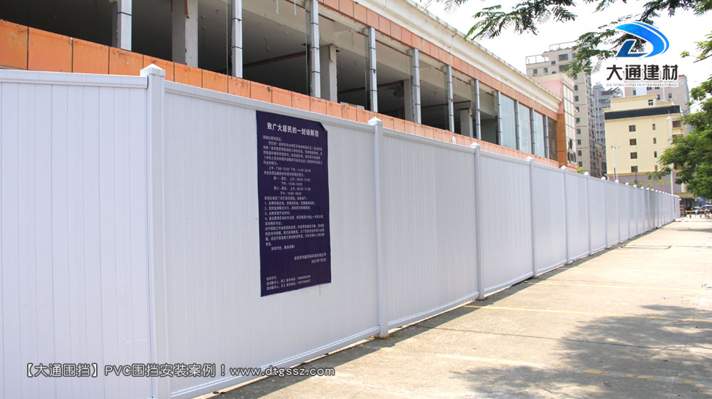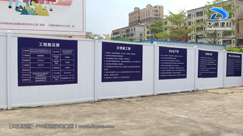 深圳光明新區PVC圍擋安裝案例,由深圳市環鵬環保科技有限公司施工的項目,光明區舊房拆除工程項目,采用深圳市大通建材有限公司PVC圍擋來做安全防護圍擋,拆除面積總占地18785平方米,PVC圍擋安裝總長度230米。