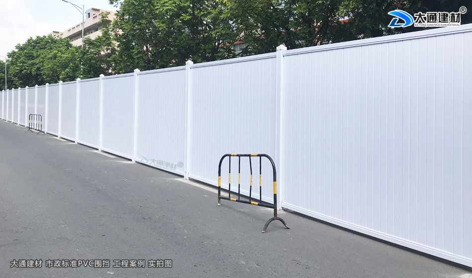 大通建材市政工程PVC圍擋的圍墻板采用白色PVC長條版拼接,而立柱、橫管均為白色PVC材料,內部均襯塑鋼方通,立柱底板為鋼板,機動靈活,快速拆裝,簡單快捷牢固,經濟實用、成本低; 并加斜支撐,增加受力,承載力大、抗風阻系數高、穩定性強。非常適用于市政建設施工、房地產項目施工、高架橋施工、地地鐵項目施工、路橋維護施工、隧道施工、立面改造施工、廠房隔斷施工等工程。