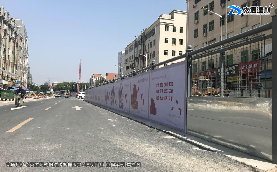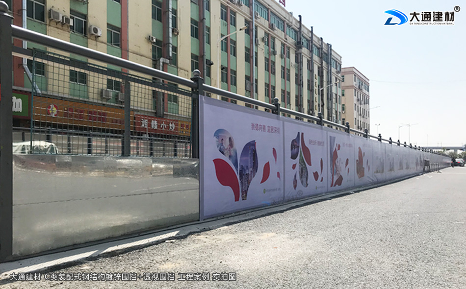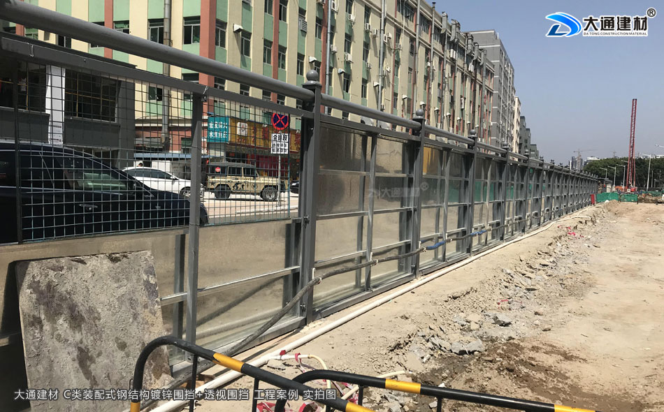 上述展示的是工地中安裝了大通建材透明圍擋+C類鍍鋅款鋼結(jié)構(gòu)圍擋的案例實(shí)拍圖