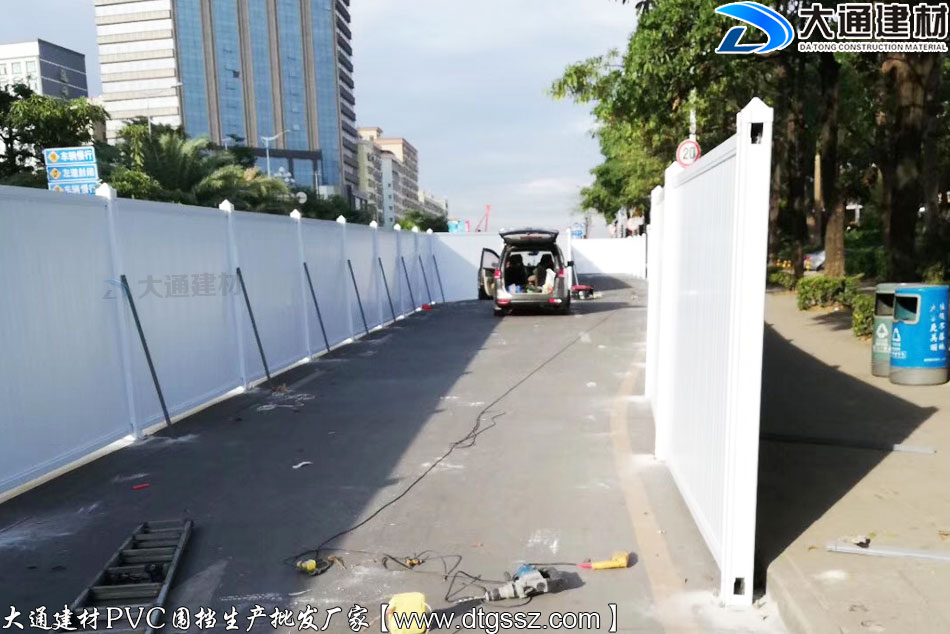 大通建材廠家批發符合佛山市政標準白色PVC圍擋,PVC圍擋生產源頭廠家,備有充足的PVC圍擋庫存,用戶下單 大通即可安排發貨,大通PVC圍擋美觀環保、安全穩固、經久耐用,在使用中有較好的防護能力,適合市政道路/地鐵工程/地產建設等選用。