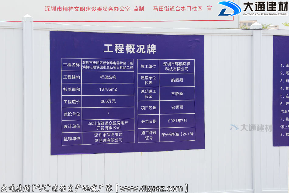 圍擋供應商:深圳市大通建材工程PVC圍擋生產廠家