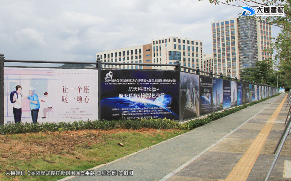 施工安全方案解決工程師,24小時在線等候您的咨詢!深圳市大通建材有限公司多年來一直專業生產圍擋廠家。那么大通鍍鋅板鋼圍擋有哪些常用的款式呢?現在就與大通圍擋小編一起了解一下大通哪些尺寸規格的C類裝配式鍍鋅鋼板圍擋是最受用戶喜歡的吧。