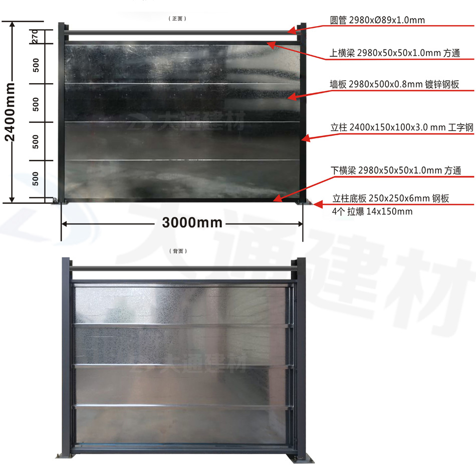 大通建材工字鋼圍擋C類鍍鋅板款亦是一款新型的裝配式鋼結(jié)構(gòu)圍蔽,符合市政新標(biāo)準(zhǔn)、拆裝方便、結(jié)構(gòu)牢固、抗風(fēng)力達(dá)到10級(jí)、安全性高,圍擋生產(chǎn)源頭廠家直接銷售、價(jià)格更便宜。