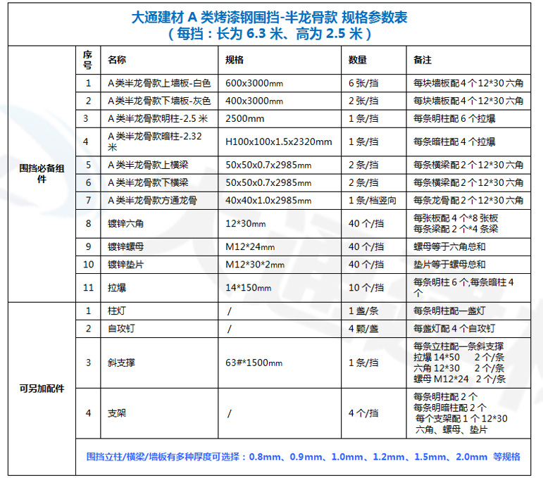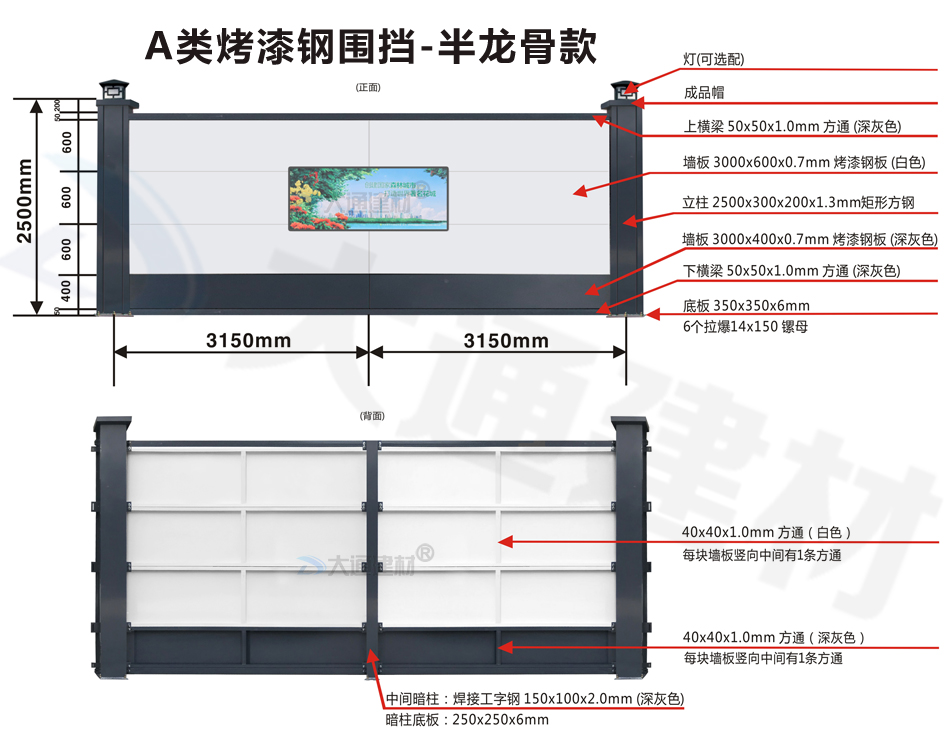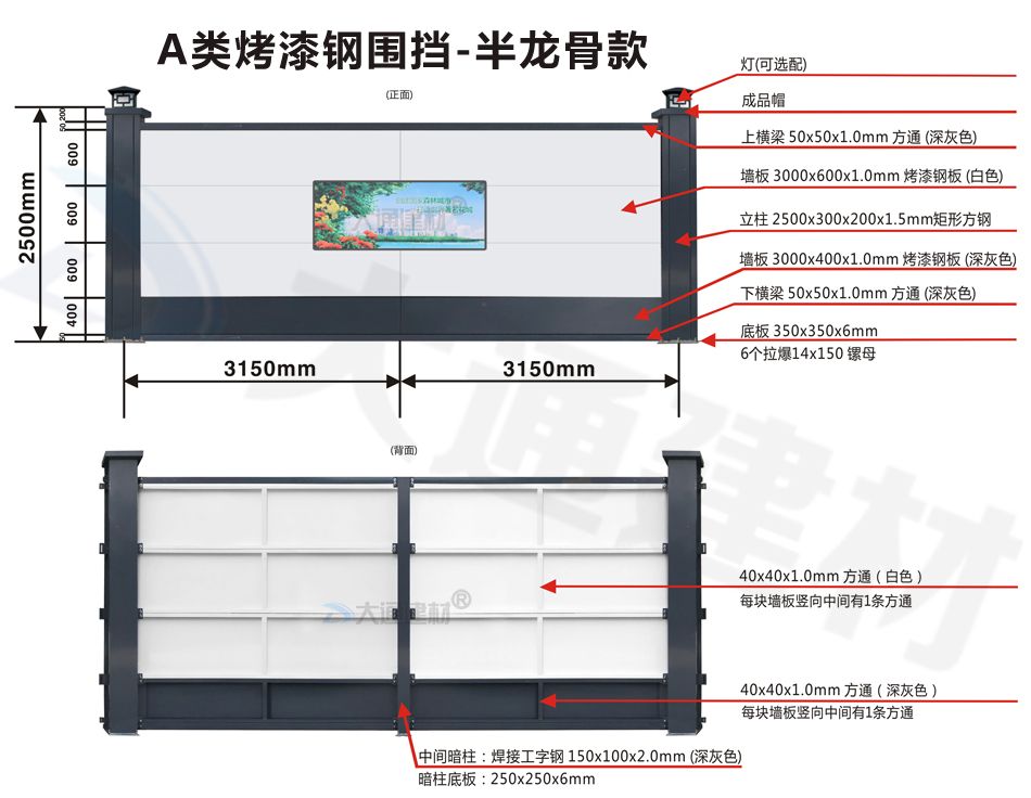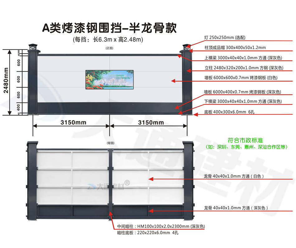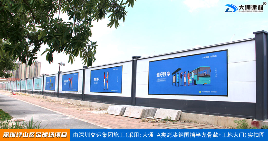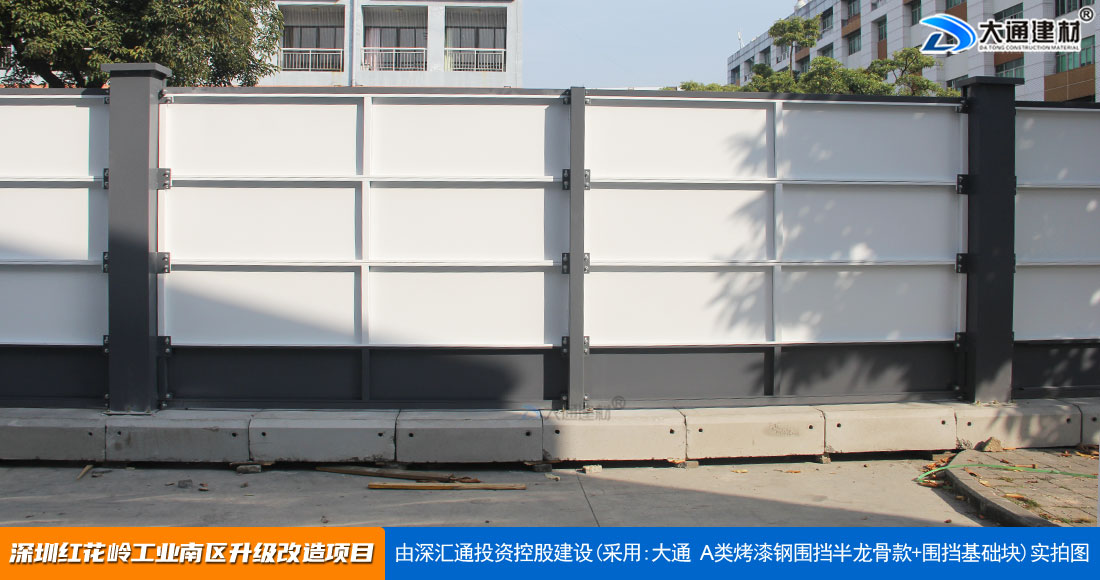 大通建材A類鋼結構烤漆圍擋半/無龍骨款適用于市政建設施工、房地產項目施工、地鐵項目施工、管網改造、小區(qū)改造、城市建設、道路施工等工程使用