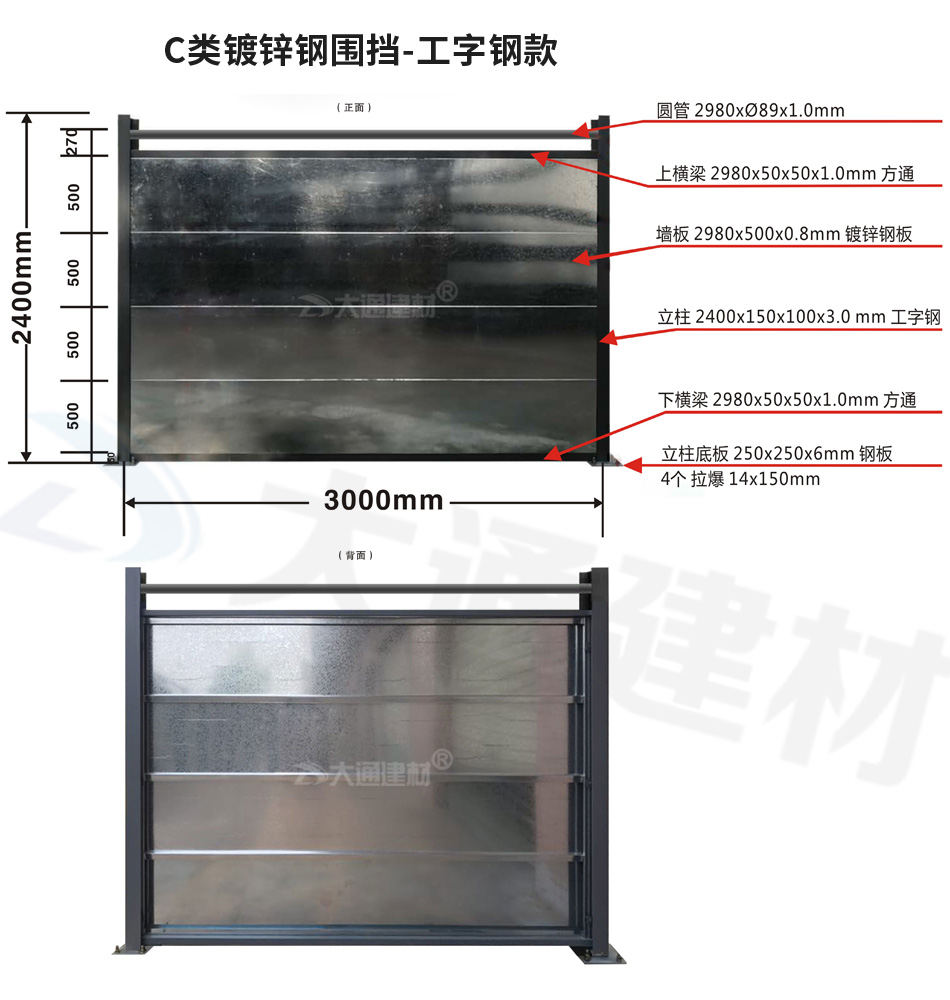 深圳大通建材 C類鍍鋅板鋼圍擋-工字鋼款 安裝說明