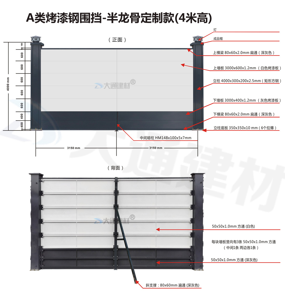 大通建材 A類烤漆鋼圍擋-半/無龍骨4米高定制款 生產(chǎn)廠家