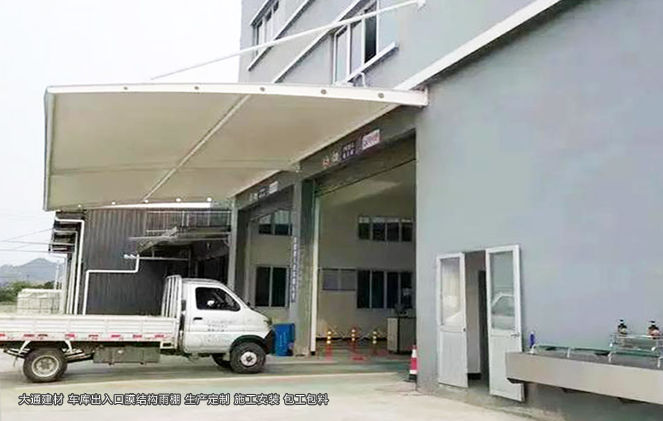 深圳市大通建材車庫出入口膜結構雨棚可根據實際需求進行定制和設計調整,滿足不同場所和用途的需求。大通擁有專業的生產定制、施工安裝 車庫出入口膜結構雨棚的團隊,廠家直銷各類膜結構雨棚價格便宜。更多具體詳情可致電 13826562448 梁先生 期待您的來電咨詢選購