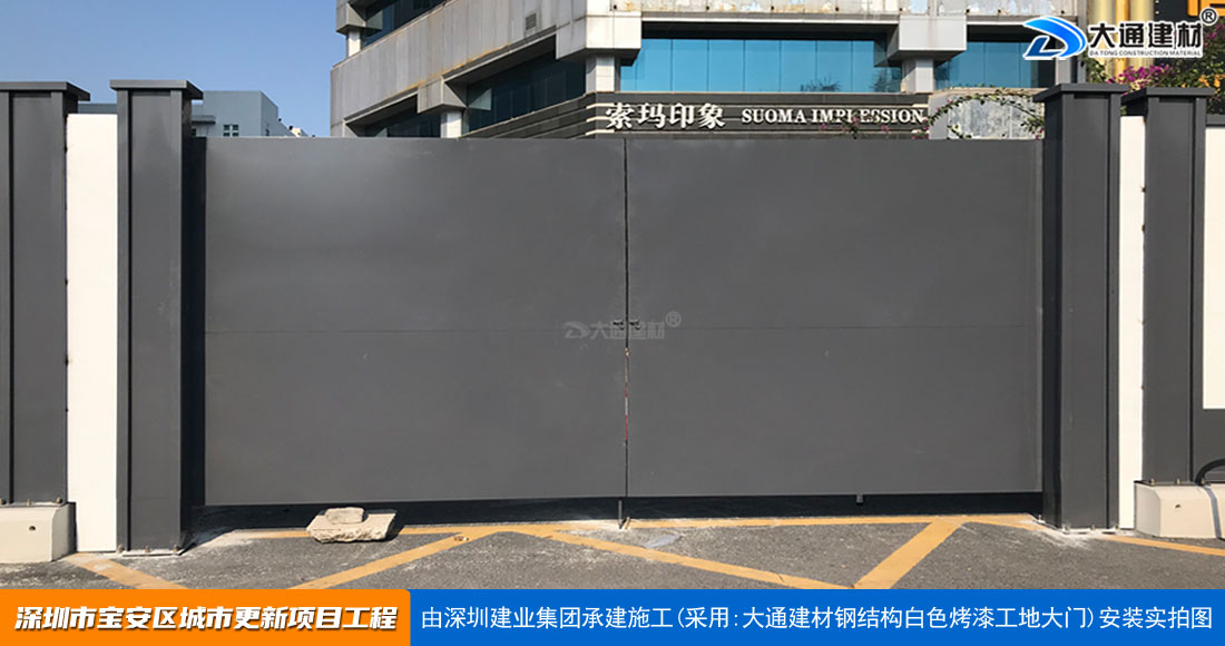 深圳市大通建材專業鋼結構工地烤漆雙開門生產批發源頭廠家,在東莞設有大型工地鋼結構烤漆大門生產基地,貨源充足,由廠家直接銷售價格便宜;一龍條服務,能夠實現客戶下單后馬上發貨安裝,客戶還可根據實際需求進行定制化生產。了解更多“大通建材工地大門”規格與價格詳情 請咨詢 13826562448 梁先生