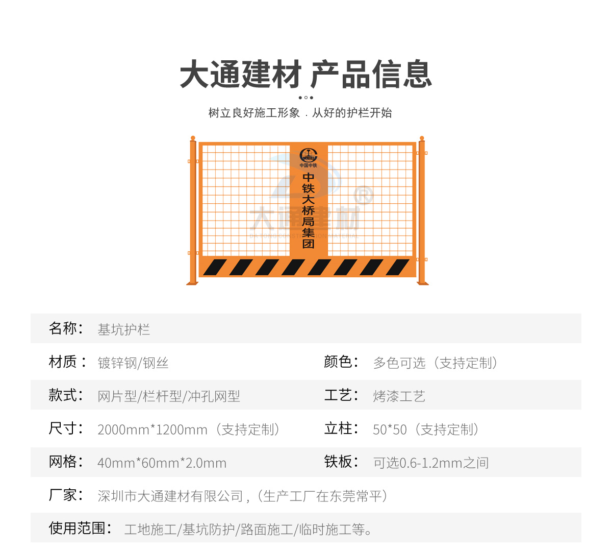 深圳市大通建材有限公司是一家集研發、生產、安裝、服務于一體的綜合性圍擋廠家,公司主營產品鋼圍擋、鋼結構圍擋、PVC圍擋、施工圍擋、市政圍擋、工地圍擋、烤漆鋼圍擋,官網:http://www.zrtf.com.cn/ ,銷售熱線:138 2656 2448